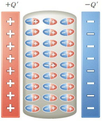전기장 안에서 극성을 지니게 되는 절연체이다. 절연체이므로 전하가 통과하지 않지만, 주변의 전기장의 영향으로 유전체 내의 음전하, 양전하가 그에 맞춰 도열하는 현상이 발생하며 극성을 지니게 된다.