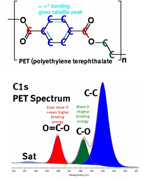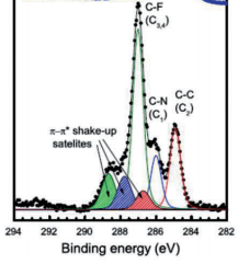 상대적으로 결합력이 약한 C-C 결합의 경우 가장 낮은 결합에너지를 보여주고 있고 결합력이 가장 큰 C-F 결합의 경우 C에 존재하는 외곽전자가 F쪽으로 이동하였기 때문에 상대적으로 줄어든 전자의 밀도에 의해 더 큰 전자 결합에너지를 보이고 있다