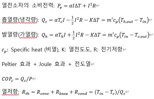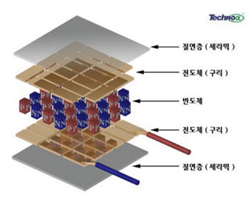 - 전원이 들어가면 한면은 차갑고 다른 면은 뜨겁고, 반대로 넣어주면 반대로 온도 분배.
