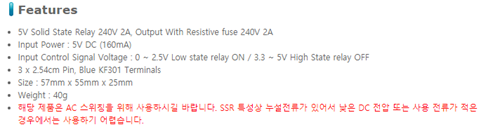 - 제어신호 전압별 : 제어측에서 사용하는 전압의 종류별로 3V용,5V용,12V용이 있는데 아두이노 환경에서는 5V를 사용하므로 5V용을 사용하면 됩니다.
