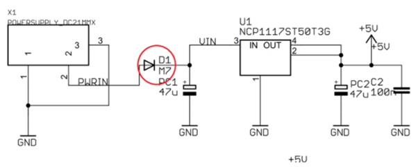- Vin pin으로 전원 연결 시, 이 핀에 연결된 다이오드를 거치며 0.2~1V 가량의 전압을 소모하게 됩니다.
