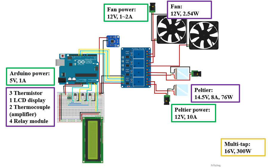 그 과정에서 열전대/써미스터로 받아들인 온도값을 바탕으로 팰티어로 특정 온도조건을 유지시켜주는 셋업이 필요합니다.