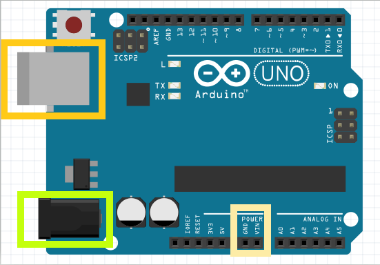 - 아두이노 우노의 Vin 핀이 흘려줄 수 잇는 최대 전류량은 약 1A이다. (연결된 다이오드 때문에 1A가 최대)