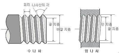 M12, 1.75P: M은 굵기, P는 피치=나사산 사이의 거리