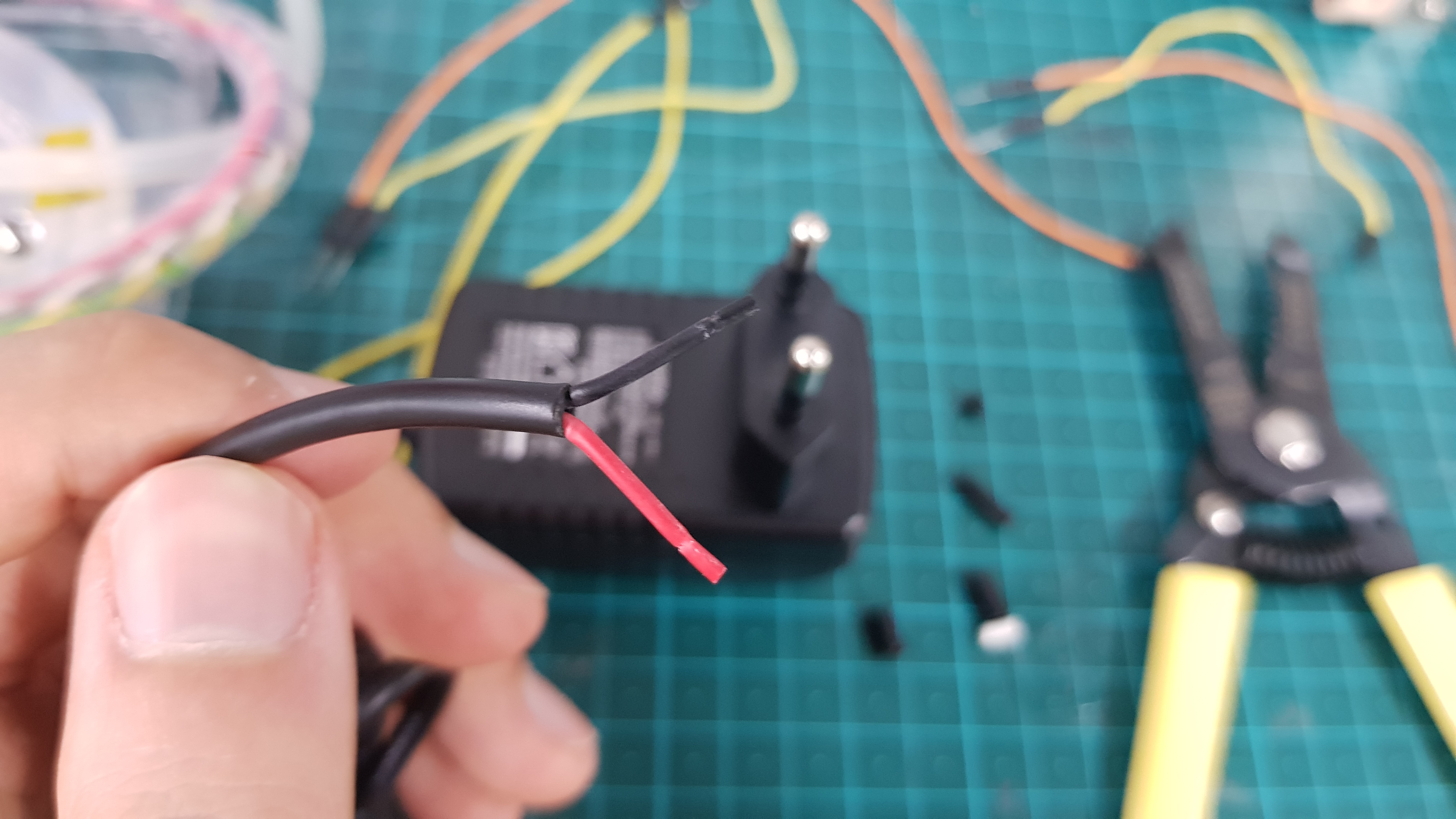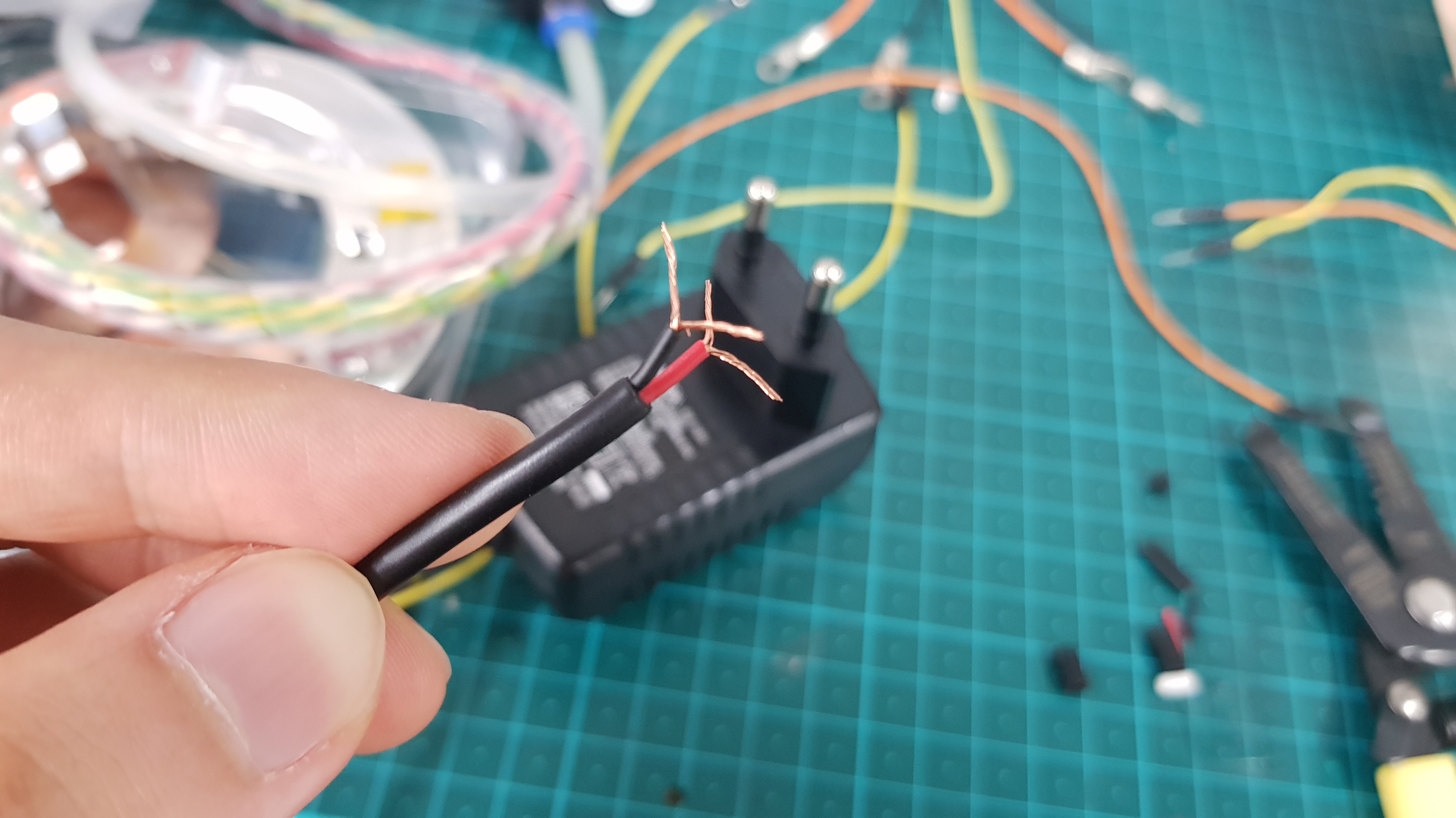 우선 겉부분 피복부터 벗겨내는데, 생각보다 전선들이 잘 잘리기 때문에 조심해주세요 :)