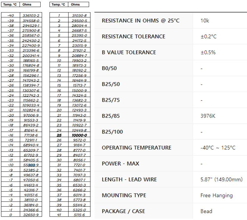 현재 실험 셋업에 사용중인, 사용하려 했던 써미스터의 데이터 정리겸 작성하는 것입니다.