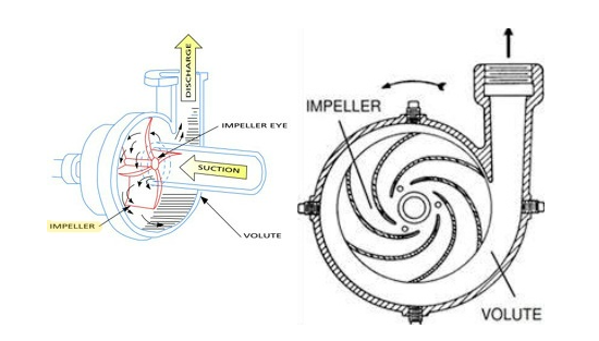 펌프내의 위치에너지는 같다는 가정하에, 임펠러로 만들어진 운동에너지(고속)을 압력에너지(압력)으로 바꿔주면 된다. 속도가 줄면 압력이 높아지게 되는 것이다. 그 과정을 해주는 것이 벌루트, 공간을 넓힘으로써 속도는 줄이고 압력을 높인다.