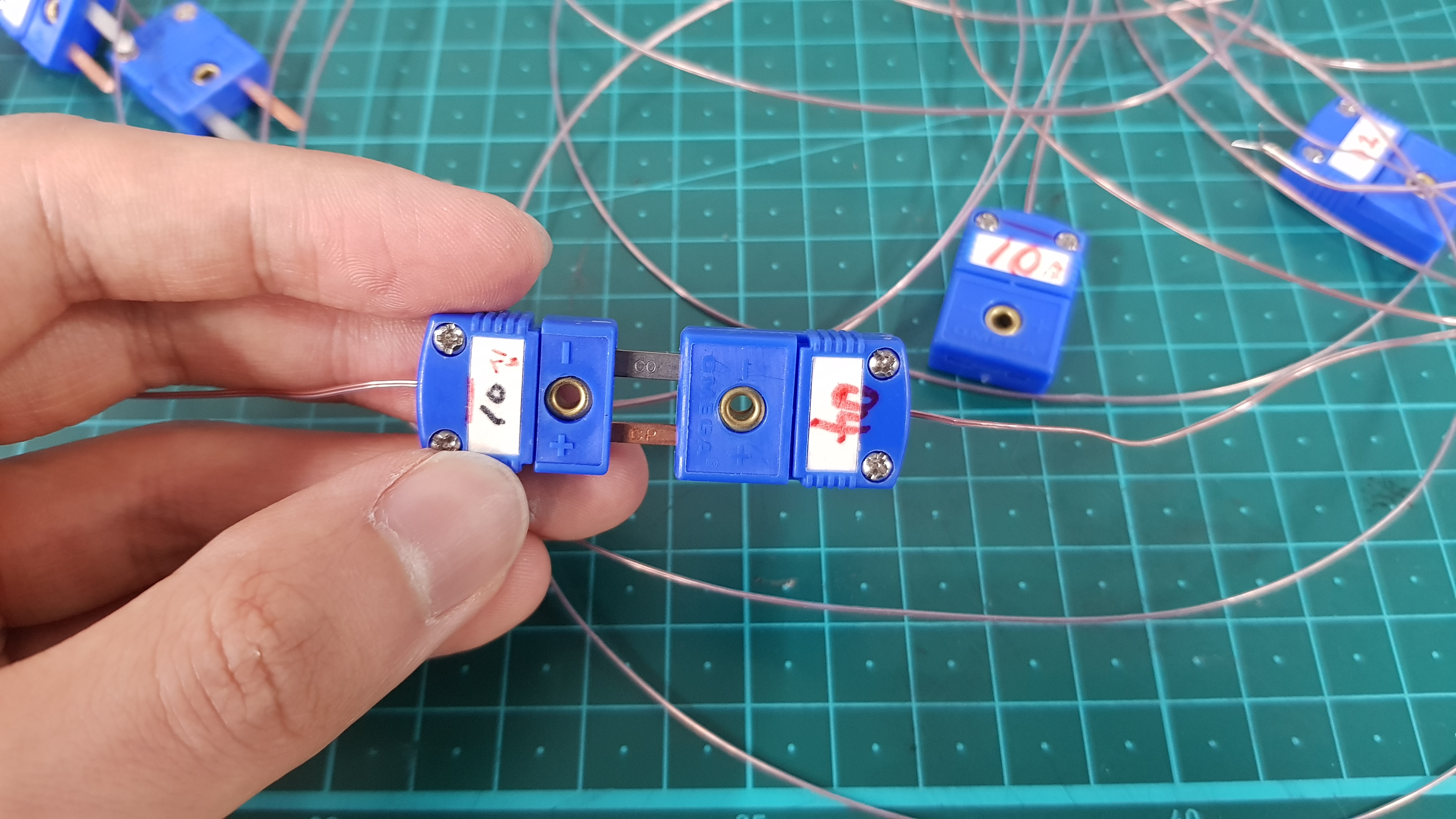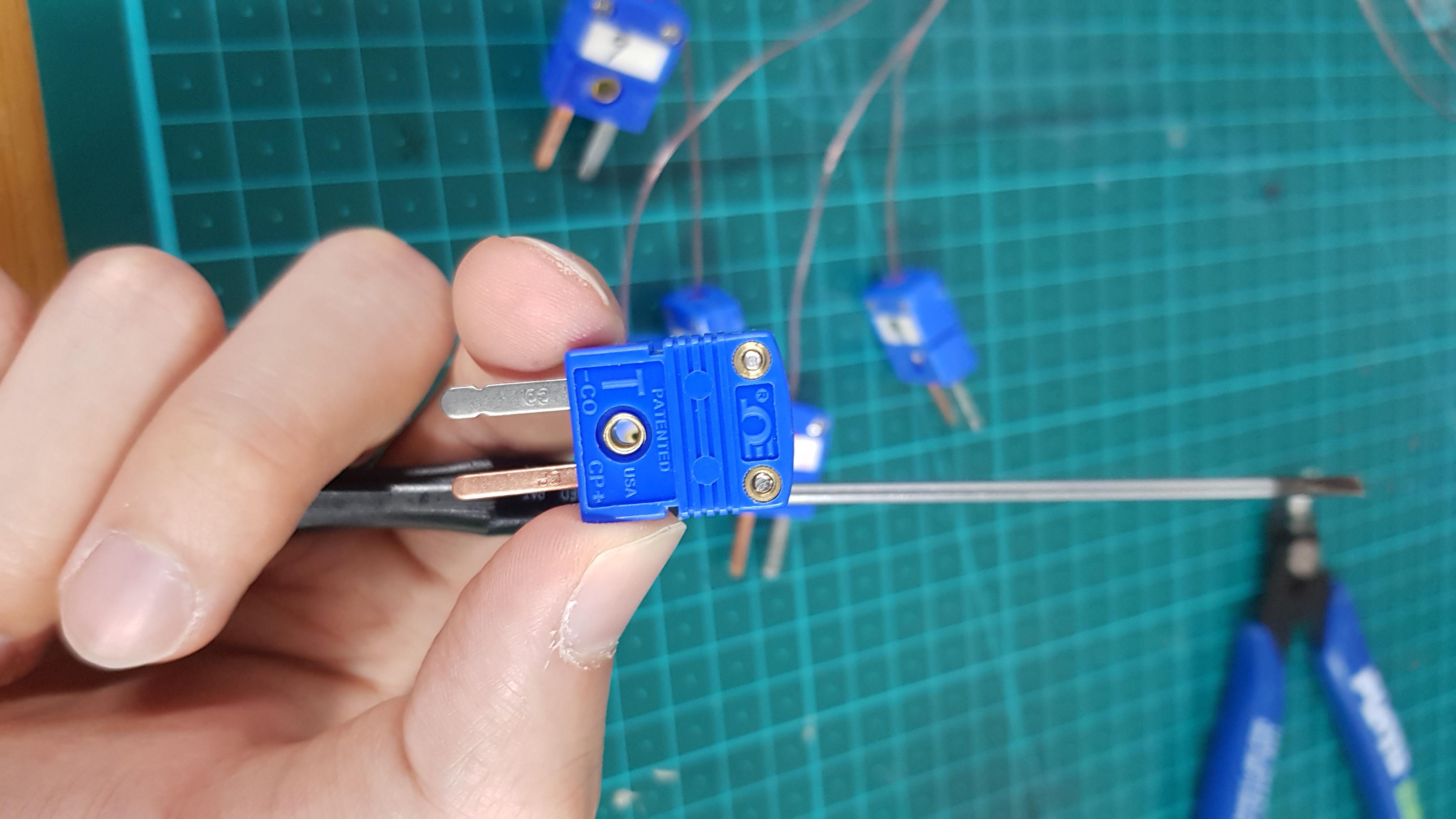 (열전대 어댑터의 막대기,,의 색 = 열전대 피복의 벗긴 금속의 색)