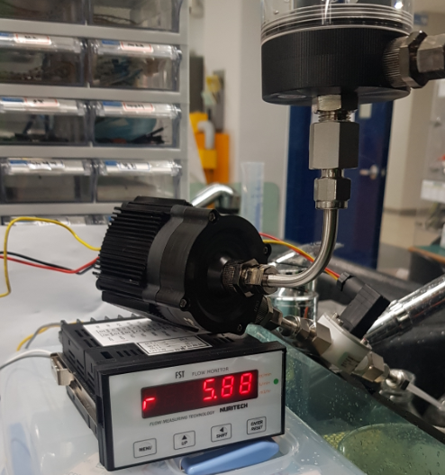 (유량계는 대략 내경이 6.35 mm 정도 되는 제품이기에 수두손실 없이 측정이 가능했습니다. 다만, 최대 10 LPM 측정가능,,)