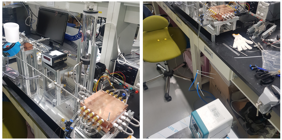 그래서 칠러의 압력을 키우고 줄여주며 (3 atm - 5 atm - 3 atm 반복) 시스템 구동 전에 공기층을 빼줍니다.