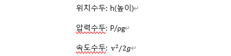 압력/운동/위치에너지의 관계를 나타냅니다.