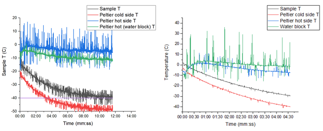 충분한 쿨링시스템이 갖춰졌으며 + 타겟온도로 더 빠른 변화를 원한다면 ==> 조금 더 고전력의 펠티어를 사용하면 될 것 같습니다 :)