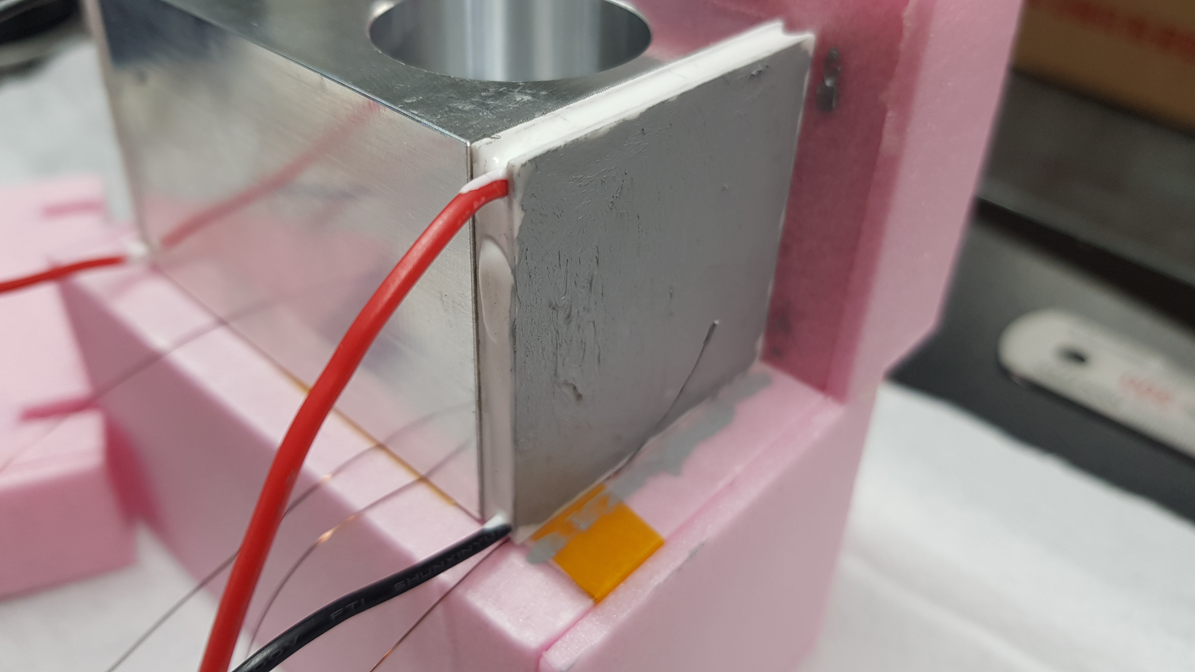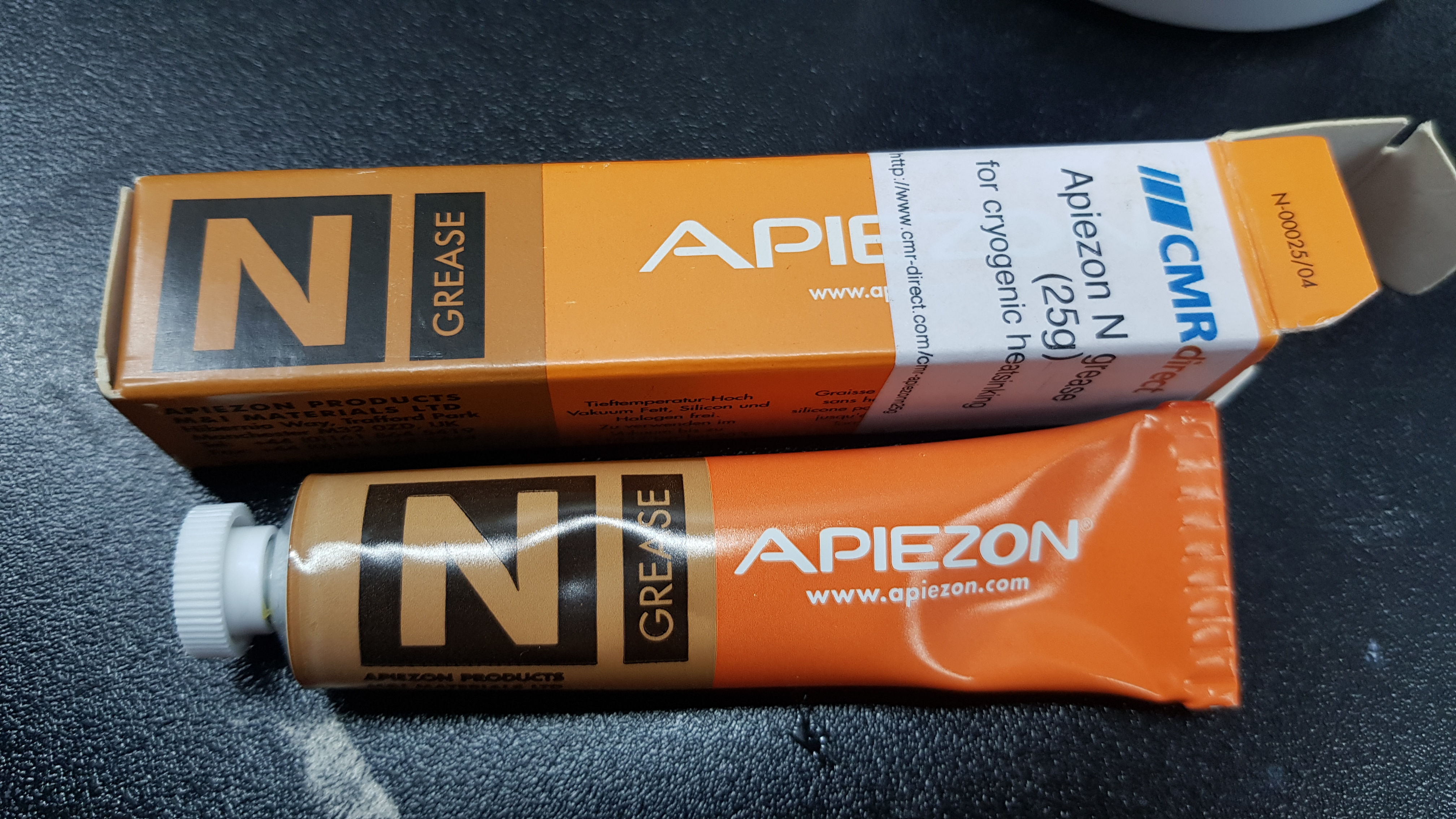 가공맡겼던 바이알 홀더(알루미늄)와 펠티어가 닿는 부분은 -50도 정도로 쿨링이 되기에 위에서 주황 TIM(Apiezon N cryogenic TIM)사용