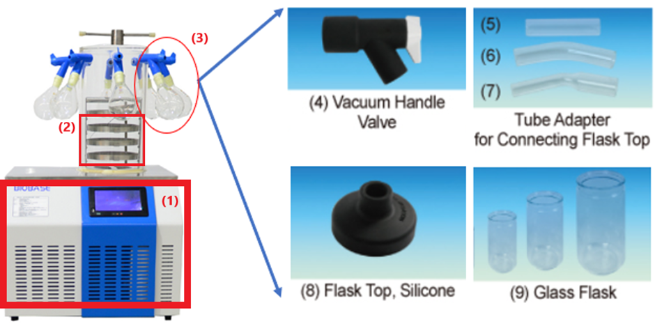 (2) 동결건조 시스템을 보면, 샘플을 올려두는 선반, 공간에 히터가 내장되어 있다.(열은 일반적으로 제품을 받치는 선반을 통해 전달)