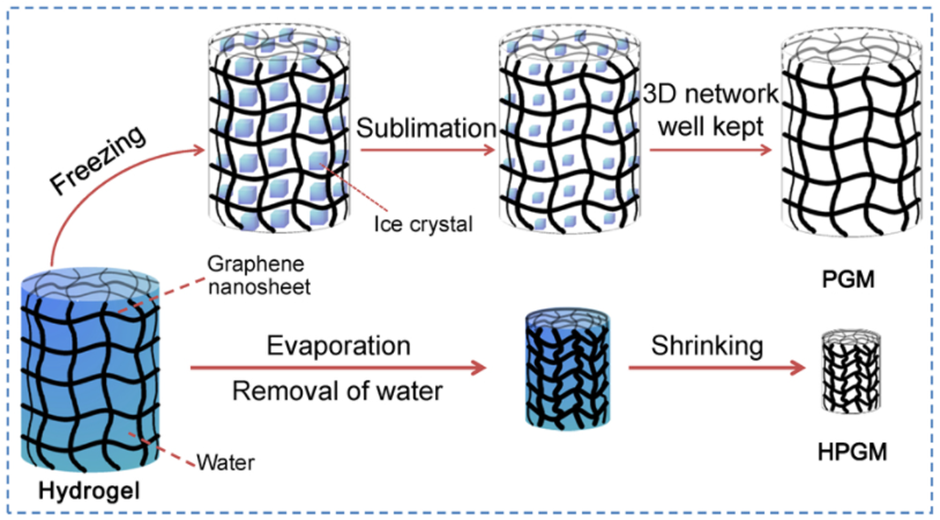 얼음결정 그대로 승화시켜 얼음결정이 없어진 다공성구조를 유지시키는 건조방식