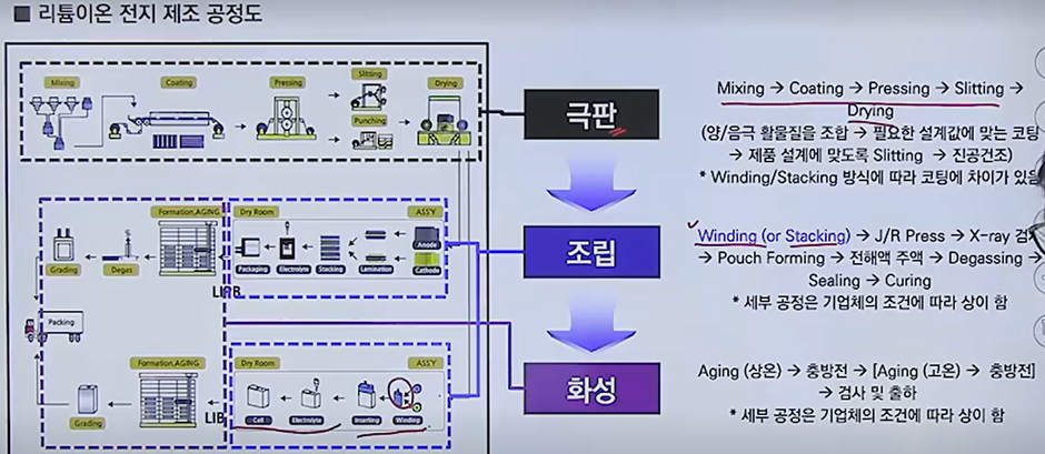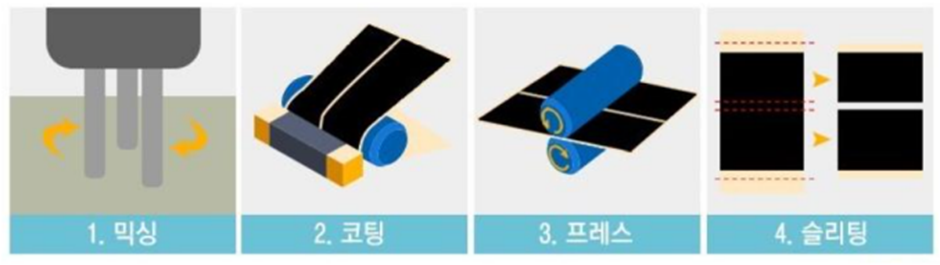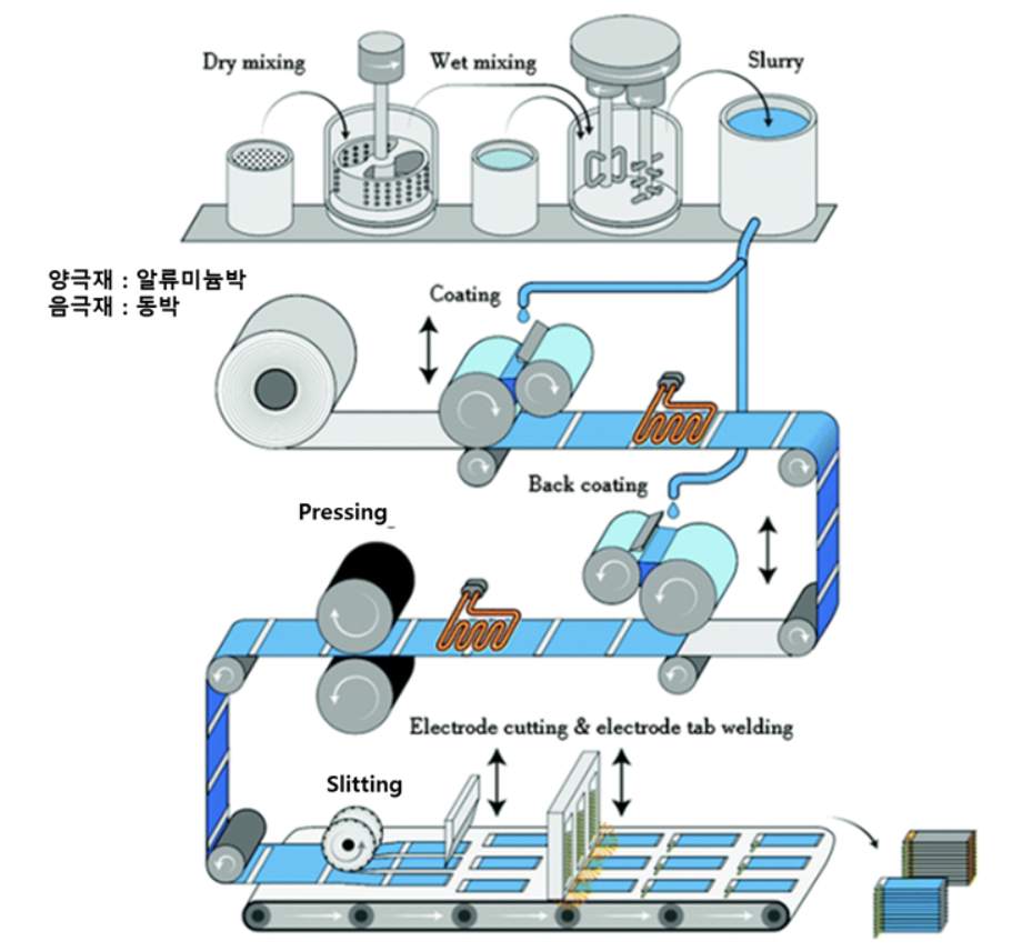 - 극판을 설계에 맞게 슬리팅(노칭이라는 공정, 사이즈에 맞게 자르는 과정)과정을 거쳐