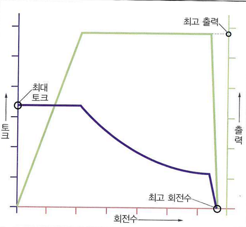 저속에서는 고토크를 갖고 고속으로 올라갈수록 토크는 줄어든다.