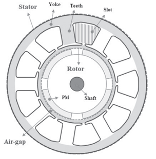 코깅 토크 리플(회전자의 영구자석과 고정자의 철심에 의해 발생)을 없애려면 -> 고정자 철심을 슬롯이 없는 구조로 만들어야함(슬롯리스 구조)