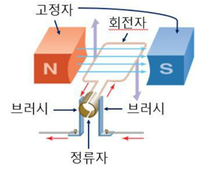 -> 브러쉬(brush)와 정류자(commutator)를 사용함으로