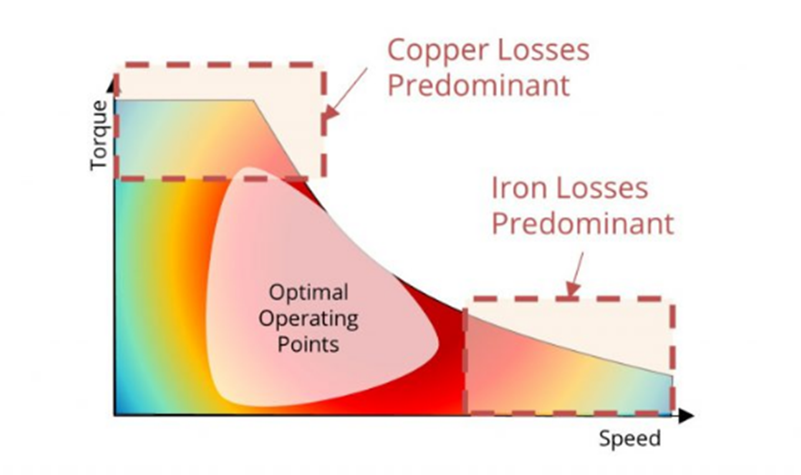 모터의 디자인에 따라 동손 보다 철손이 많이 발생하는 구간이 위와 같이 나타나기도 합니다.