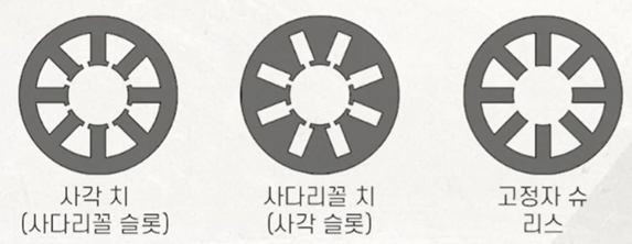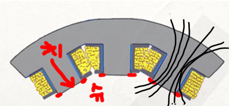 슈가 없다면 = 자기적인 평균 공극 증가 & 코일을 고정자에 삽입 및 조립시 편익성 상승(쉽게 조립)