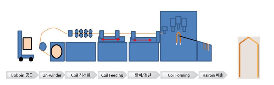 아래는 헤어핀 코일(각형 코일)의 간단한 제작 과정이다