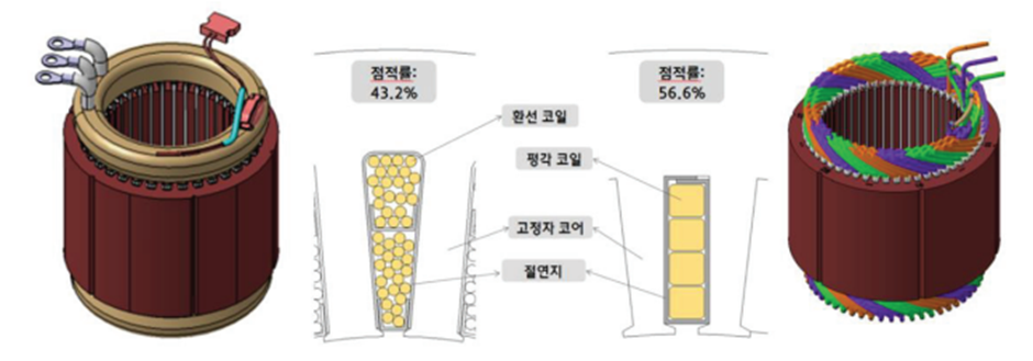 코일도체의 각형화시 코일의 집적도 향상 효과 가 높아 모터의 소형/고율화를 위해 코일 각형화의 중요성이 부각되고 많은 발전히 이루어진 상황이다.