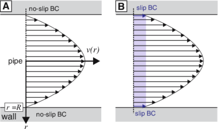 - non slip condition 존재 (고체 경계에 접촉하는 유체)