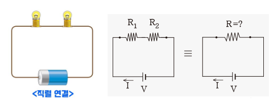 직렬 연결은 전압이 다르고 전류가 동일합니다. 저항이 다른 두 물체가 연결되면
