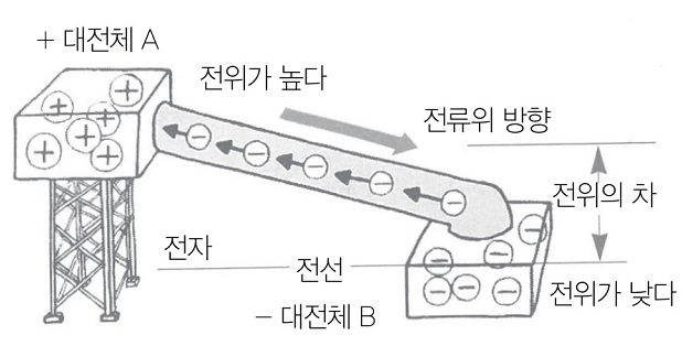 그 동일한 전류의 흐름이 어떤 물질 (상이한 저항)을 흘러 이동하느냐에 따라