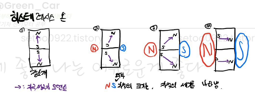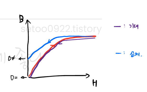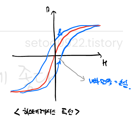 실제로는 손실(열)이 발생하며 일부의 자기성분이 강자성체에 남고,