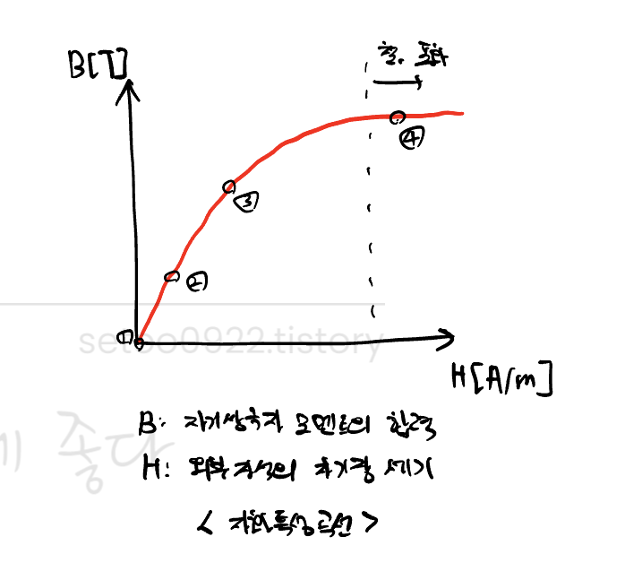 외부의 자기장 세기가 커짐에 비례해 상승하던 철의 자기성분은 한계치를 갖고 포화된다