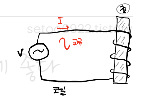 코일에는 교류가 흐르며 상을 바꿔주고 극을 회전시켜주며