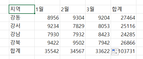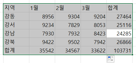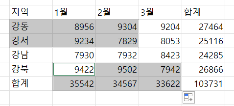 한 셀을 누른 상태에서 Ctrl + A 를 누르면, 값이 입력된 연결된 셀이 전부 선택됨