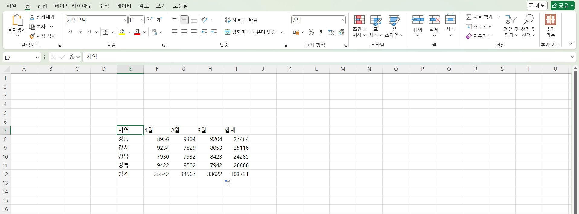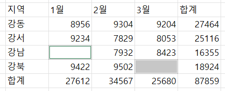 멀리 떨어져 있는 셀을 추가 선택할 때는 Ctrl + 클릭