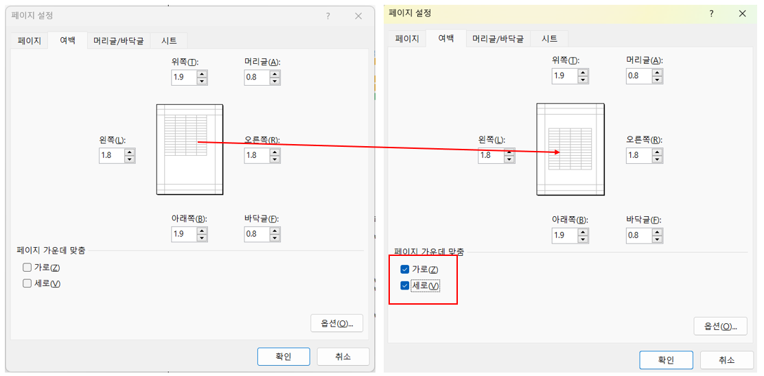 하지만, 원하는 페이지 설정대로 나오게 하기 위해