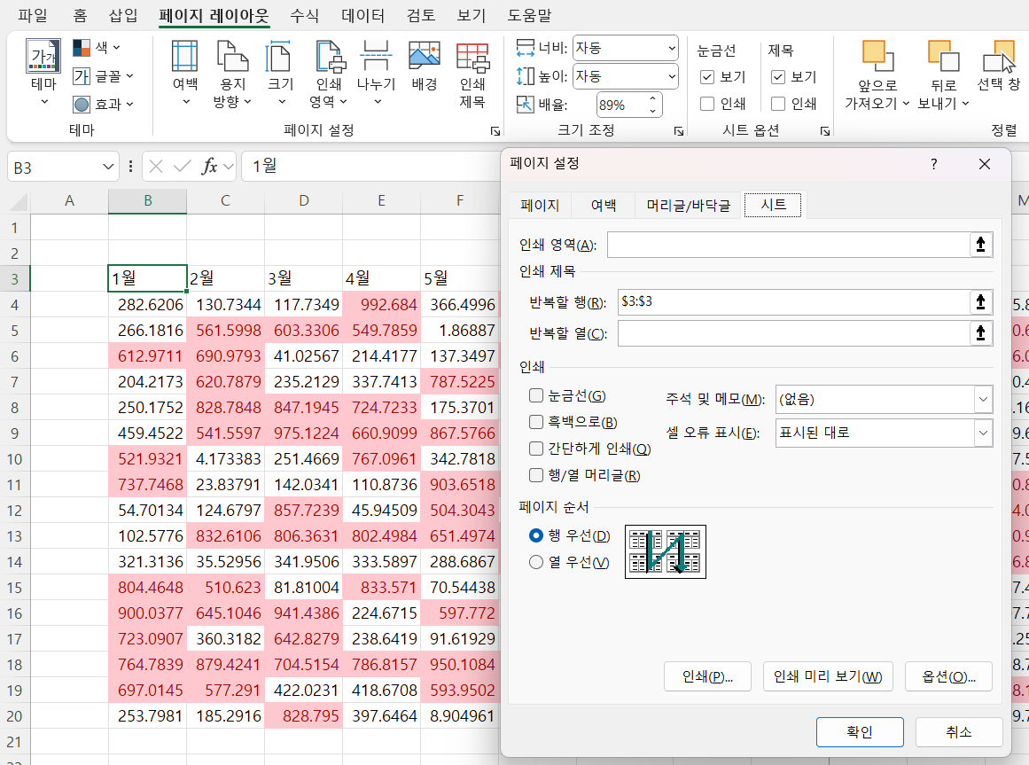 - 반복 행/열 설정을 통한 시트 인쇄