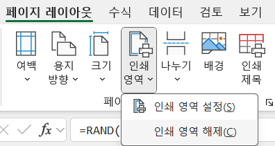 - 페이지 레이아웃 - 페이지 설정 - 인쇄영역