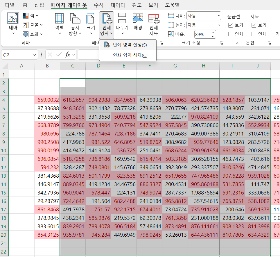 - 인쇄 영역으로 설정하면