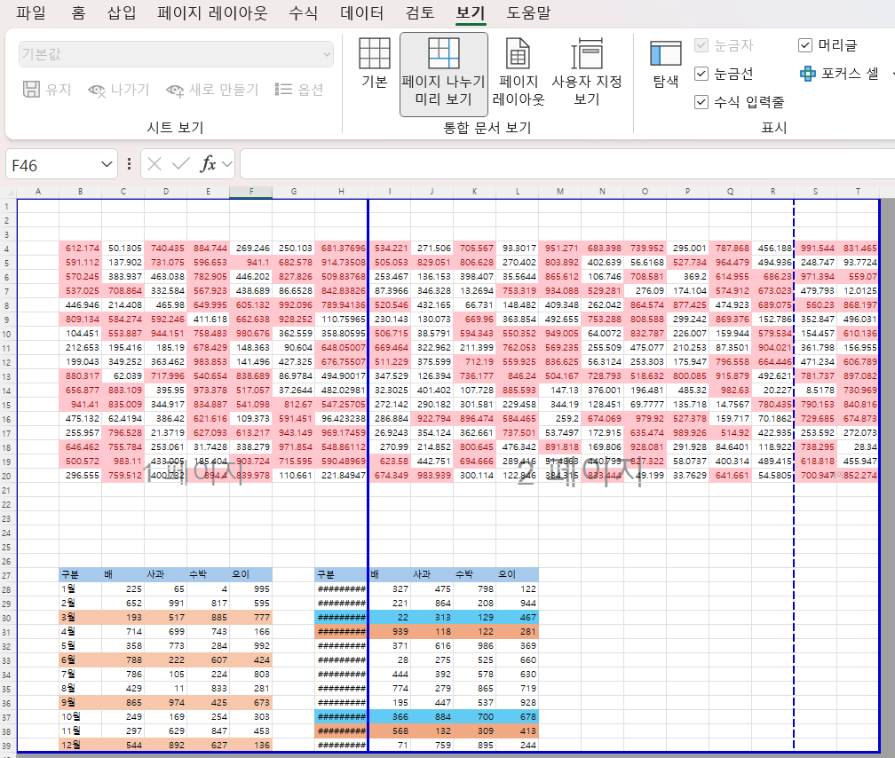 3. 가장 유용하다 싶은게 페이지 나누기 미리 보기 활용