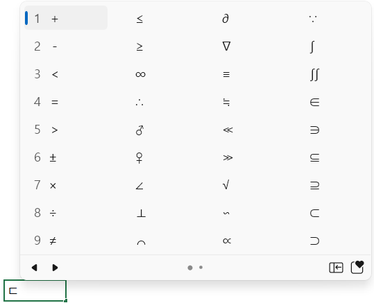 좌우로 움직여 원하는 특수기호가 있는 곳으로 이동