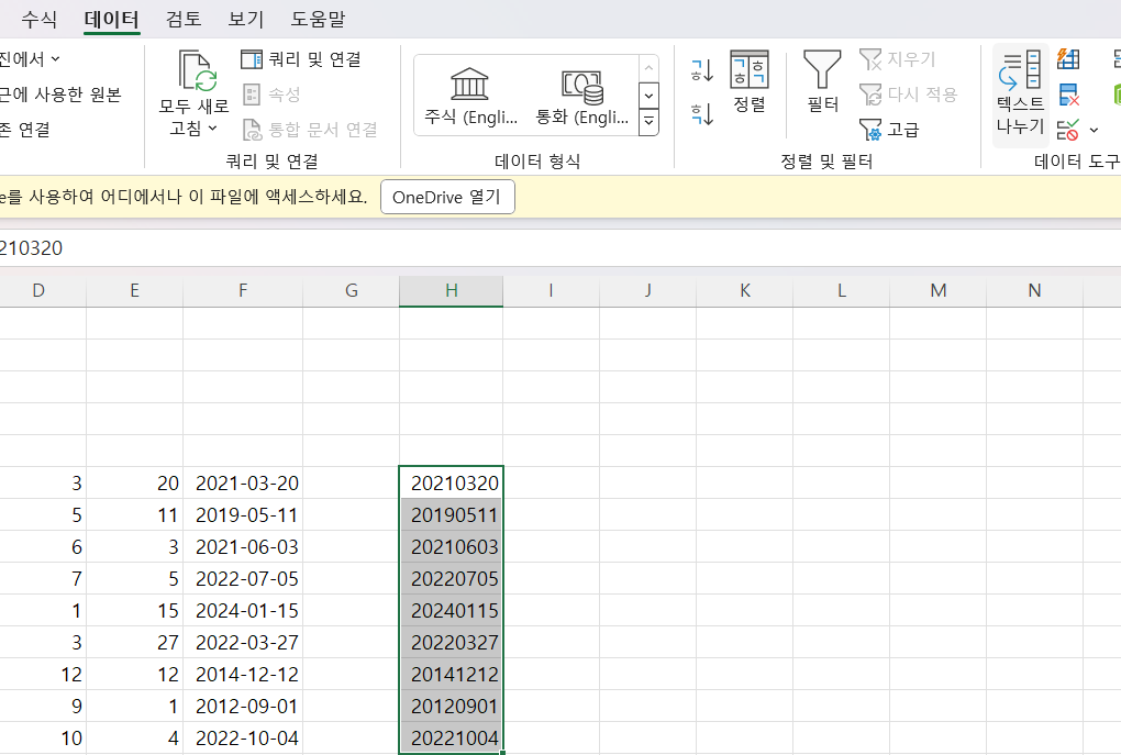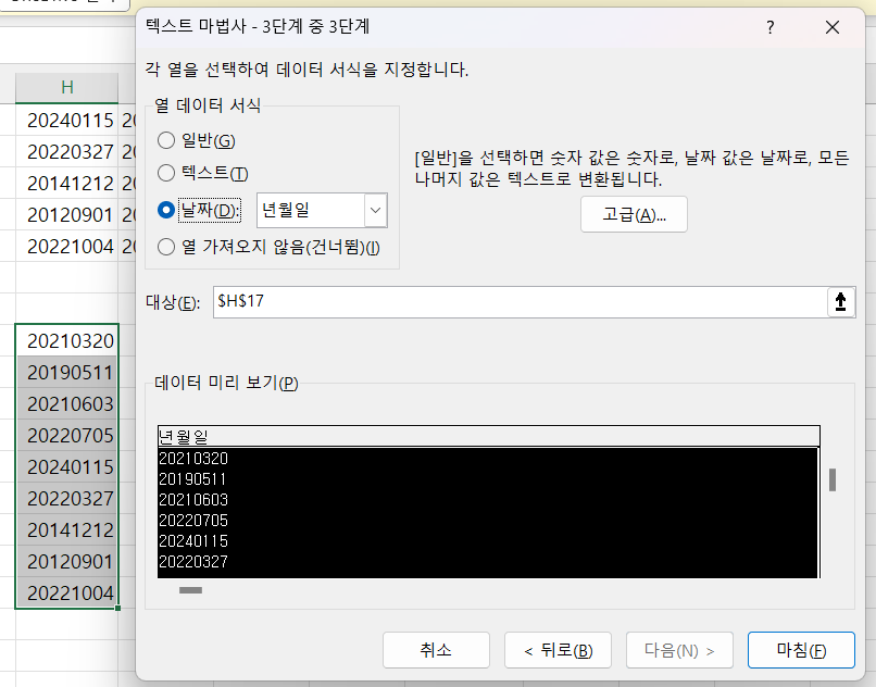 or 그냥 셀 서식에서 날짜로 변경해도 가능할 것 같으나