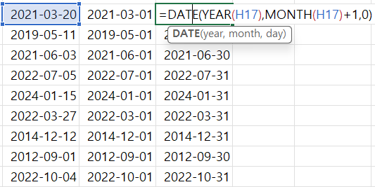 날짜 (연, 월)의 첫날, 마지막날 등을 선택하는 방법도 있습니다