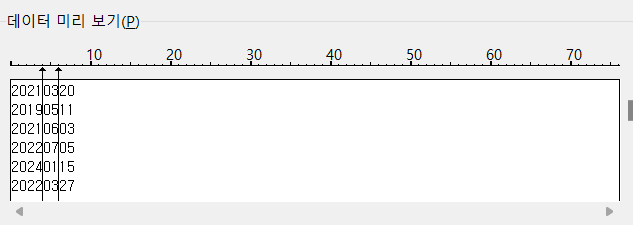 데이터 미리보기에서, 누르고 이동시켜주며 나눔 선 선택