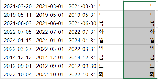 날짜 쪼개어 날짜 형식으로 - 함수 + 요일 만들기