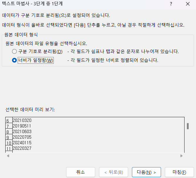 하나의 셀에 연월일이 있떤걸 다시