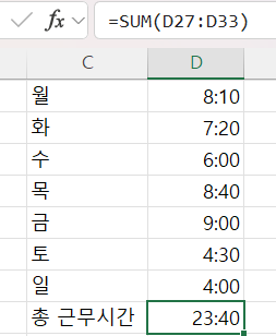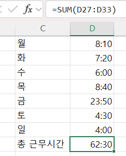 다시 [h]:mm 등의 형식으로 바꾸어 줌으로 시간 환산을 합니다