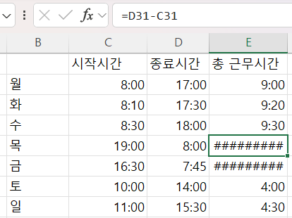 총 근무시간은 ###로 에러값을 나타냅니다