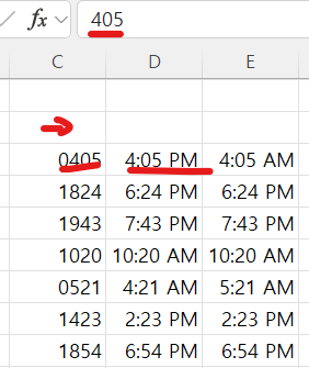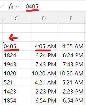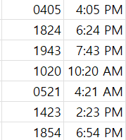 이러한 데이터를 엑셀에서 시간으로 읽게하려면