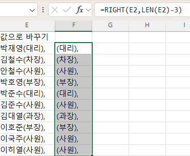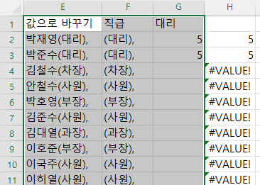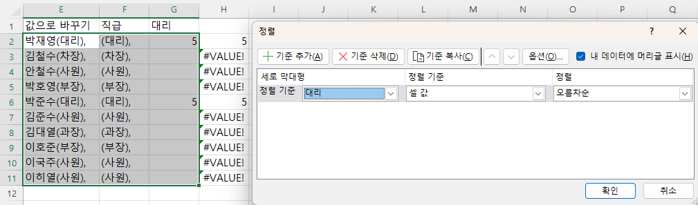 그럼 이제 대리가 있는 행에 값이 뜨게끔 만들었고,